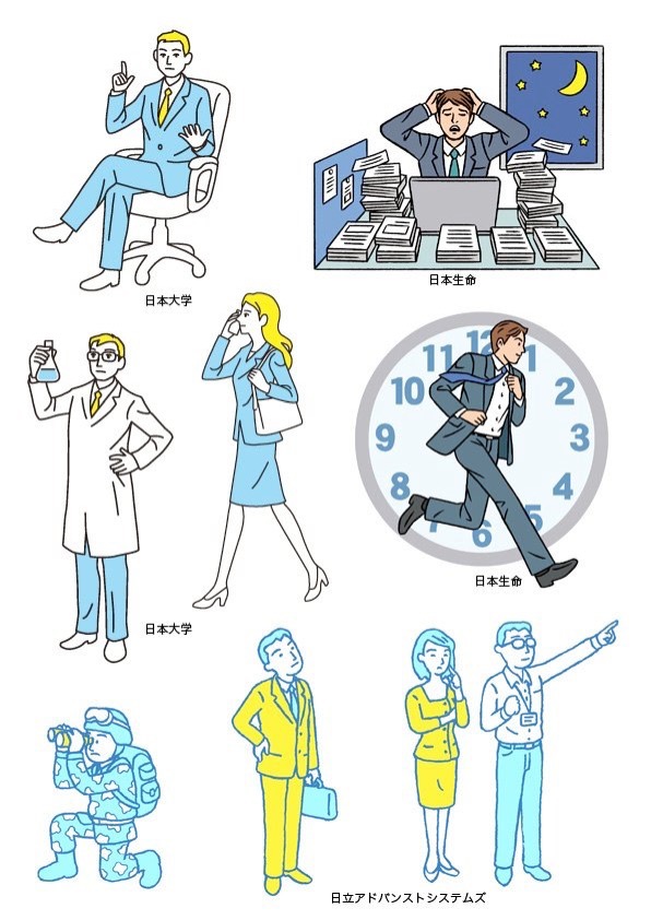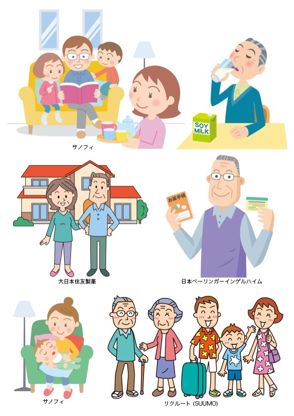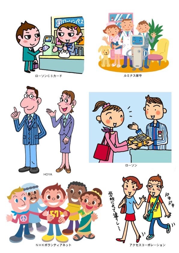 ローソン、HONDA、ブリジストン、三菱、三井生命、富士銀行、東京メトロ、NTT、NHK、TBS、JAL、ANA、JCB、松下、リコー、カシオ、ビクター、AMUSE、ナムコ、花やしき、味の素、カゴメ、明治製菓、雪印、HOYA、ネピア、エスエス製薬、わかもと製薬、高島屋、東京電力、東京ガス、九州石油、大阪ガス、北陸電力、川崎市、ぐるなび、学研、マイクロソフト、ソフトバンク、リクルート、ダイヤモンド社、東芝、光通信、TSUTAYA、セキスイハイム、日清紡、全日空トラベル、リネックス、ピジョン、ファミリーマート、ビッグホリデー、北陸銀行、アイビー化粧品、フォンテーヌ、東京経済大学、明治大学、東京工科大学、島田理化工業、宮城県、サカイ引越センター、エーザイ、KDDI au 北陸、シーボン化粧品、航空自衛隊、全労済、日本眼科医会、NTT西日本、NTTドコモ、バイエル薬品、ノバルティスファーマ、サノフィ、ファイザー、アース製薬、帝人ファーマ、グラクソ・スミスクライン、日本ベーリンガーインゲルハイム、キッセイ薬品、サントリー、明治乳業、HITACHI、日立アドバンスシステムズ、三菱ガス化学、三菱ふそう、三菱ビルマネジメント、小田急電鉄、東武鉄道、JR東日本、ダイア建設、ダイワハウス、フコク生命、アクサ生命、日本生命、住建ハウジング、HOME’S、COCO塾、日本大学、中外製薬、武田薬品、第一三共、住友ファーマ、西松建設・・・